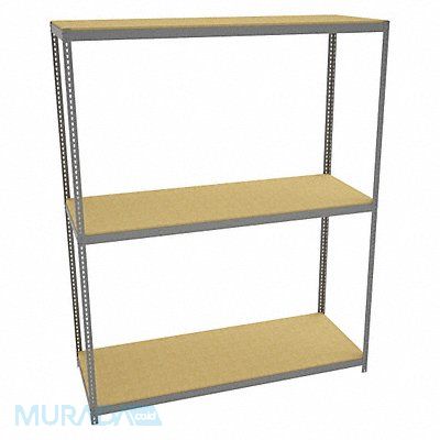 Boltless Shelving Angle Overall Depth 36 in Overall Height 120 in Overall Width 96 in Shelf Gauge 14 ga Shelf Adjustment Increments 1 1/2 in Steel Particleboard Steel (3) Deck Levels (4) Posts Includes Decking Yes 1 250 lb Whole Unit Load Capacity 3 750 lb Starter Open SCS Indoor Advantage(R) Certified Post Gauge 14 ga Number of Shelves 3 Maximum Post Load Capacity 8 000 lb with Beams Evenly Spaced at 24 in Powder Coated Heavy-Duty Gray