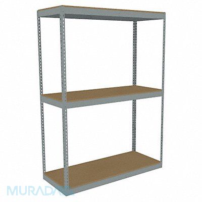 Boltless Shelving Angle Overall Depth 18 in Overall Height 84 in Overall Width 72 in Shelf Gauge 14 ga Shelf Adjustment Increments 1 1/2 in Steel Particleboard Steel (12) Beams (4) Posts Includes Decking Yes 1 750 lb Whole Unit Load Capacity 5 250 lb Starter Open Post Gauge 14 ga Number of Shelves 3 Maximum Post Load Capacity 8 000 lb with Beams Evenly Spaced at 24 in Powder Coated Heavy-Duty Gray