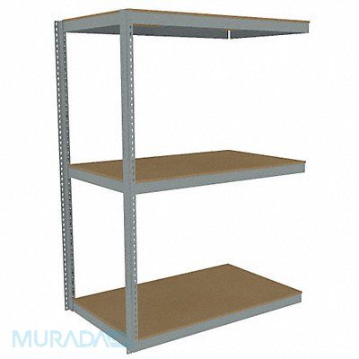 Boltless Shelving Angle Overall Depth 30 in Overall Height 84 in Overall Width 72 in Shelf Gauge 14 ga Shelf Adjustment Increments 1 1/2 in Steel Particleboard Steel (12) Beams (2) Posts Includes Decking Yes 1 750 lb Whole Unit Load Capacity 5 250 lb Add-On Open Post Gauge 16 ga Number of Shelves 3 Maximum Post Load Capacity 8 000 lb with Beams Evenly Spaced at 24 in Powder Coated Heavy-Duty Gray