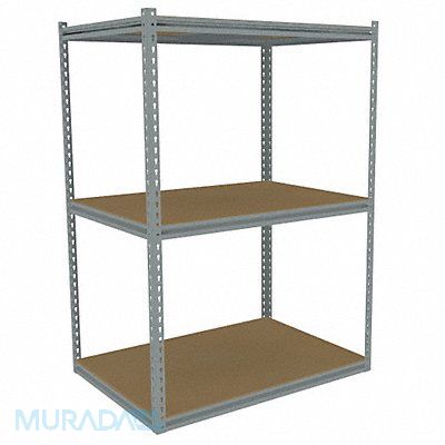 Boltless Shelving Medium Profile Overall Depth 30 in Overall Height 60 in Overall Width 42 in Shelf Gauge 14 ga Shelf Adjustment Increments 1 1/2 in Steel Particleboard Steel (4) Posts Includes Decking Yes 900 lb Whole Unit Load Capacity 2 700 lb Starter Open ANSI BIFMA CREL Post Gauge 14 ga Number of Shelves 3 Maximum Post Load Capacity 8 000 lb with Beams Evenly Spaced at 24 in Powder Coated Medium-Duty Sand