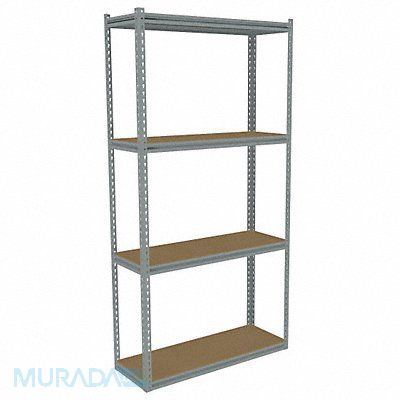 Boltless Shelving Medium Profile Overall Depth 15 in Overall Height 84 in Overall Width 42 in Shelf Gauge 14 ga Shelf Adjustment Increments 1 1/2 in Steel Particleboard Steel (4) Posts Includes Decking Yes 800 lb Whole Unit Load Capacity 2 400 lb Starter Open ANSI BIFMA CREL Post Gauge 14 ga Number of Shelves 4 Maximum Post Load Capacity 8 000 lb with Beams Evenly Spaced at 24 in Powder Coated Medium-Duty Sand
