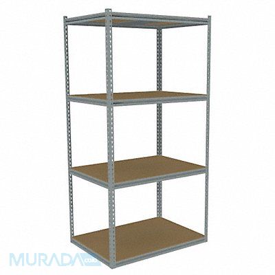 Boltless Shelving Medium Profile Overall Depth 30 in Overall Height 84 in Overall Width 42 in Shelf Gauge 14 ga Shelf Adjustment Increments 1 1/2 in Steel Particleboard Steel (4) Posts Includes Decking Yes 900 lb Whole Unit Load Capacity 2 700 lb Starter Open ANSI BIFMA CREL Post Gauge 14 ga Number of Shelves 4 Maximum Post Load Capacity 8 000 lb with Beams Evenly Spaced at 24 in Powder Coated Medium-Duty Sand