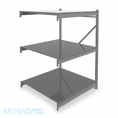 Bulk Storage Rack Shelving Type Add-On Overall Width 48 in Overall Depth 48 in Overall Height 72 in Decking Material Steel No of Shelves 3 Shelf Capacity 4150 lb Load Capacity 12 450 lb Shelving Frame Material Steel Gray Finish - Shelving and Racks Powder Coated Shelf Adjustments 2 in Shelving Gauge 22 For Use With Tennesco Bulk Storage and Boltless Racks Includes (3) Shelves End Frame