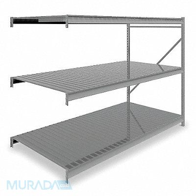 Bulk Storage Rack Shelving Type Add-On Overall Width 96 in Overall Depth 48 in Overall Height 72 in Decking Material Steel No of Shelves 3 Shelf Capacity 2150 lb Load Capacity 6450 lb Shelving Frame Material Steel Gray Finish - Shelving and Racks Powder Coated Shelf Adjustments 2 in Shelving Gauge 22 For Use With Tennesco Bulk Storage and Boltless Racks Includes (3) Shelves End Frame