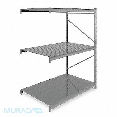 Bulk Storage Rack Shelving Type Add-On Overall Width 72 in Overall Depth 48 in Overall Height 96 in Decking Material Steel No of Shelves 3 Shelf Capacity 2750 lb Load Capacity 8250 lb Shelving Frame Material Steel Gray Finish - Shelving and Racks Powder Coated Shelf Adjustments 2 in Shelving Gauge 22 For Use With Tennesco Bulk Storage and Boltless Racks Includes (3) Shelves End Frame