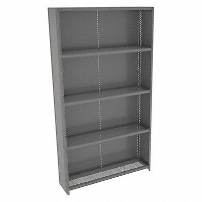 Metal Shelving Gray Powder Coated Frame Material Steel Load Capacity per Shelf 500 lb Whole Unit Load Capacity 2 500 lb Number of Shelves 5 Overall Depth 18 in Overall Height 84 in Overall Width 48 in Post Construction Angle Shelf Configuration Starter Shelf Style Ventilated Shelving Material Steel Assembled Unassembled Shelving Gauge 22 ga Post Gauge 14 ga Shelf Adjustment Increments 1 in Number of Drawers 0 Duty Rating Medium-Duty