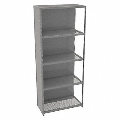 Metal Shelving Gray Powder Coated Frame Material Steel Load Capacity per Shelf 750 lb Whole Unit Load Capacity 3 750 lb Number of Shelves 5 Overall Depth 18 in Overall Height 84 in Overall Width 36 in Post Construction Bead Shelf Configuration Add-On Shelf Style Ventilated Shelving Material Steel Assembled Unassembled Shelving Gauge 22 ga Post Gauge 14 ga Shelf Adjustment Increments 1 in Number of Drawers 0 Duty Rating Medium-Duty
