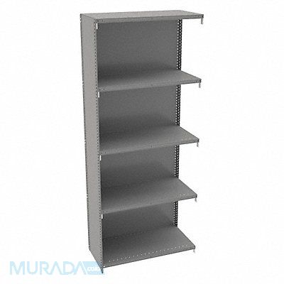Metal Shelving Gray Powder Coated Frame Material Steel Load Capacity per Shelf 750 lb Whole Unit Load Capacity 3 750 lb Number of Shelves 5 Overall Depth 12 in Overall Height 84 in Overall Width 36 in Post Construction Bead Shelf Configuration Add-On Shelf Style Solid Shelving Material Steel Assembled Unassembled Shelving Gauge 22 ga Post Gauge 14 ga Shelf Adjustment Increments 1 in Number of Drawers 0 Duty Rating Medium-Duty