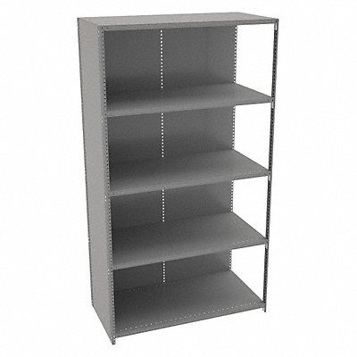 Metal Shelving Gray Powder Coated Frame Material Steel Load Capacity per Shelf 550 lb Whole Unit Load Capacity 2 750 lb Number of Shelves 5 Overall Depth 24 in Overall Height 84 in Overall Width 48 in Post Construction Bead Shelf Configuration Add-On Shelf Style Solid Shelving Material Steel Assembled Unassembled Shelving Gauge 20 ga Post Gauge 14 ga Shelf Adjustment Increments 1 in Number of Drawers 0 Duty Rating Medium-Duty