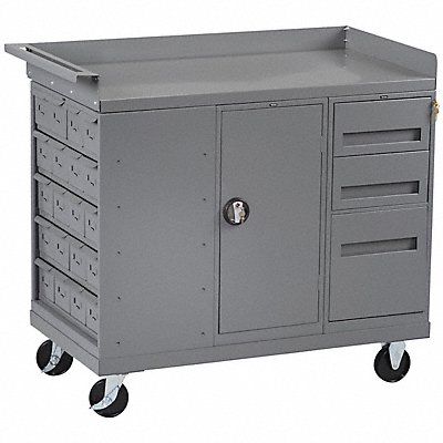 Mobile Cabinet Workbench Top Material Steel Color Gray Non-Metal Top Thickness Not Applicable Number of Doors 1 Number of Drawers 4 Number of Shelves 1 Overall Depth 25 in Overall Height 43 in Overall Load Capacity 1 000 lb Overall Width 48 in Top Metal Material Gauge 16 ga Included Components Drawers Storage Bins Assembly Partially Assembled Brake Type Wheel Brake Cabinet Interior Depth 22 in Caster Mount Type Bracket Caster Type (2) Rigid (2) Swivel