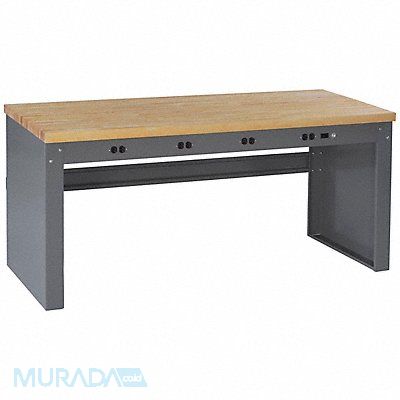 Workbench Height Adjustability Fixed Height Top Material Laminated Hardwood Butcher Block Assembly Unassembled Color Gray Frame Material Steel Leg Type Panel Leg Maximum Adjustable Height Not Applicable Minimum Adjustable Height Not Applicable Non-Metal Top Thickness 1 3/4 in Number of Cabinets 0 Number of Drawers 0 Number of Knockouts 8 Included Components Power Strip Stringer Number of Outlets 8 Number of Shelves 0 Overall Depth 30 in Overall Fixed Height 33 1/2 in