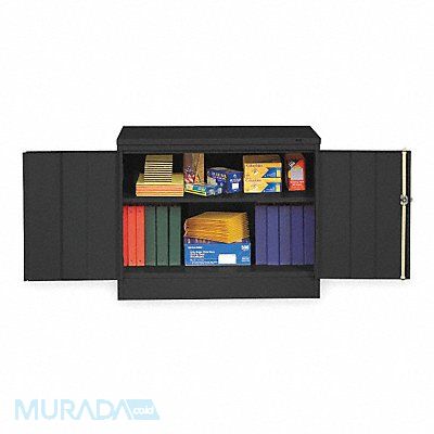 Storage Cabinet Base Type Frame Body Panel Type Solid Cabinet Color Black Cabinet Material Steel Cabinet Storage Components Shelves Door Handle Type Swing Door Type Solid Duty Rating Light Duty For Use Indoors/Outdoors No Frame Assembled Assembled Load Capacity per Shelf 200 lb Lock Type Keyed Mobility Stationary Mounting Location Freestanding Number of Shelves 2 Overall Depth 18 in Overall Height 30 in Overall Width 36 in Audit Trail Storage None Cabinet Finish Powder Coated