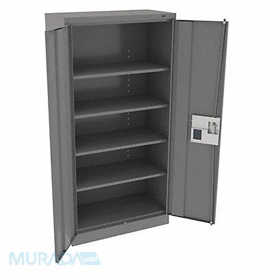 K3837 Storage Cabinet Base Type Frame Body Panel Type Solid Cabinet Color Medium Gray Cabinet Material Steel Cabinet Storage Components Shelves Door Handle Type Recessed Pull Door Type Solid Duty Rating Light Duty For Use Indoors/Outdoors No Frame Assembled Assembled Load Capacity per Shelf 200 lb Lock Type Electronic Keypad Mobility Stationary Mounting Location Freestanding Number of Shelves 4 Overall Depth 18 in Overall Height 72 in Overall Width 36 in Cabinet Finish Powder Coated