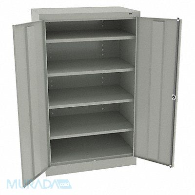 K3842 Storage Cabinet Base Type Frame Body Panel Type Solid Cabinet Color Light Gray Cabinet Material Steel Cabinet Storage Components Shelves Door Handle Type Swing Door Type Solid Duty Rating Light Duty For Use Indoors/Outdoors No Frame Assembled Assembled Load Capacity per Shelf 200 lb Lock Type Keyed Mobility Stationary Mounting Location Freestanding Number of Shelves 4 Overall Depth 24 in Overall Height 60 in Overall Width 36 in Audit Trail Storage None