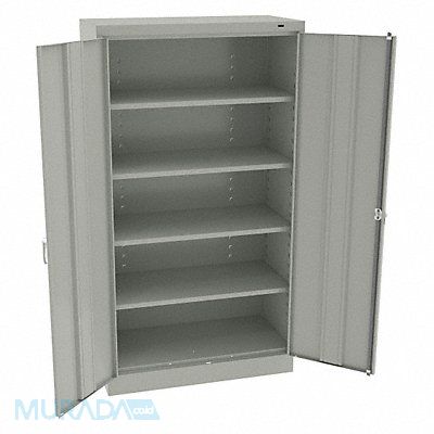 K3836 Storage Cabinet Base Type Frame Body Panel Type Solid Cabinet Color Light Gray Cabinet Material Steel Cabinet Storage Components Shelves Door Handle Type Swing Door Type Solid Duty Rating Light Duty For Use Indoors/Outdoors No Frame Assembled Assembled Load Capacity per Shelf 200 lb Lock Type Keyed Mobility Stationary Mounting Location Freestanding Number of Shelves 4 Overall Depth 18 in Overall Height 66 in Overall Width 36 in Audit Trail Storage None