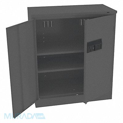 Storage Cabinet Base Type Leveling Body Panel Type Solid Cabinet Color Black Cabinet Material Steel Cabinet Storage Components Shelves Door Handle Type Recessed Pull Door Type Solid Duty Rating Medium Duty For Use Indoors/Outdoors No Frame Assembled Assembled Load Capacity per Shelf 200 lb Lock Type Electronic Keypad Mobility Stationary Mounting Location Freestanding Number of Shelves 2 Overall Depth 18 in Overall Height 42 in Overall Width 36 in Cabinet Finish Powder Coated