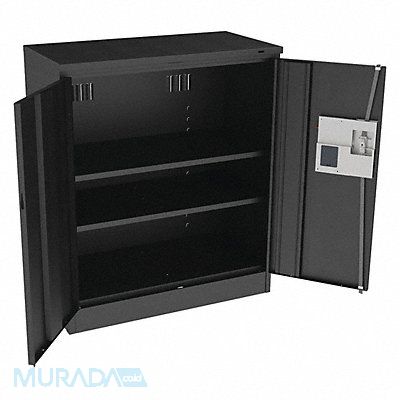 K3830 Storage Cabinet Base Type Frame Body Panel Type Solid Cabinet Color Black Cabinet Material Steel Cabinet Storage Components Shelves Door Handle Type Recessed Pull Door Type Solid Duty Rating Light Duty For Use Indoors/Outdoors No Frame Assembled Assembled Load Capacity per Shelf 200 lb Lock Type Electronic Keypad Mobility Stationary Mounting Location Freestanding Number of Shelves 2 Overall Depth 18 in Overall Height 42 in Overall Width 36 in Cabinet Finish Powder Coated