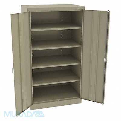 K3842 Storage Cabinet Base Type Frame Body Panel Type Solid Cabinet Color Sand Cabinet Material Steel Cabinet Storage Components Shelves Door Handle Type Swing Door Type Solid Duty Rating Light Duty For Use Indoors/Outdoors No Frame Assembled Assembled Load Capacity per Shelf 200 lb Lock Type Keyed Mobility Stationary Mounting Location Freestanding Number of Shelves 4 Overall Depth 24 in Overall Height 66 in Overall Width 36 in Audit Trail Storage None Cabinet Finish Powder Coated