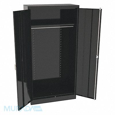 K3911 Storage Cabinet Base Type Frame Body Panel Type Solid Cabinet Color Black Cabinet Material Steel Cabinet Storage Components Hanging Rods Shelves Door Handle Type Swing Door Type Solid Duty Rating Light Duty For Use Indoors/Outdoors No Frame Assembled Assembled Load Capacity per Shelf 150 lb Lock Type Keyed Mobility Stationary Mounting Location Freestanding Number of Shelves 1 Overall Depth 18 in Overall Height 72 in Overall Width 36 in Audit Trail Storage None
