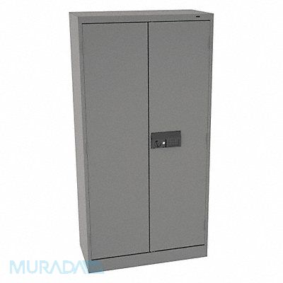Storage Cabinet Base Type Frame Body Panel Type Solid Cabinet Color Medium Gray Cabinet Material Steel Cabinet Storage Components Hanging Rods Shelves Door Handle Type Recessed Pull Door Type Solid Duty Rating Light Duty For Use Indoors/Outdoors No Frame Assembled Assembled Load Capacity per Shelf 150 lb Lock Type Electronic Keypad Mobility Stationary Mounting Location Freestanding Number of Shelves 1 Overall Depth 18 in Overall Height 72 in Overall Width 36 in