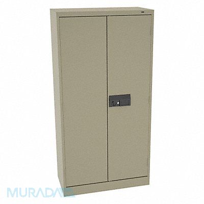 Storage Cabinet Base Type Frame Body Panel Type Solid Cabinet Color Sand Cabinet Material Steel Cabinet Storage Components Hanging Rods Shelves Door Handle Type Recessed Pull Door Type Solid Duty Rating Light Duty For Use Indoors/Outdoors No Frame Assembled Assembled Load Capacity per Shelf 150 lb Lock Type Electronic Keypad Mobility Stationary Mounting Location Freestanding Number of Shelves 1 Overall Depth 18 in Overall Height 72 in Overall Width 36 in