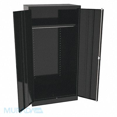 K3914 Storage Cabinet Base Type Frame Body Panel Type Solid Cabinet Color Black Cabinet Material Steel Cabinet Storage Components Hanging Rods Shelves Door Handle Type Swing Door Type Solid Duty Rating Light Duty For Use Indoors/Outdoors No Frame Assembled Assembled Load Capacity per Shelf 150 lb Lock Type Keyed Mobility Stationary Mounting Location Freestanding Number of Shelves 1 Overall Depth 24 in Overall Height 72 in Overall Width 36 in Audit Trail Storage None