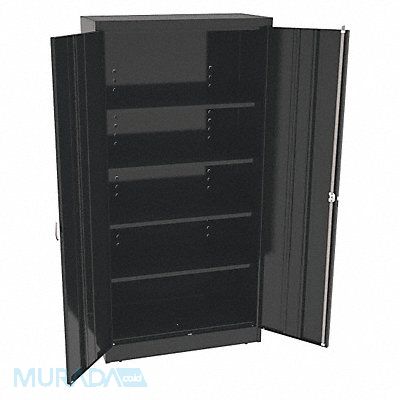 K3851 Storage Cabinet Base Type Frame Body Panel Type Solid Cabinet Color Black Cabinet Material Steel Cabinet Storage Components Shelves Door Handle Type Swing Door Type Solid Duty Rating Medium Duty For Use Indoors/Outdoors No Frame Assembled Assembled Load Capacity per Shelf 200 lb Lock Type Keyed Mobility Stationary Mounting Location Freestanding Number of Shelves 4 Overall Depth 18 in Overall Height 72 in Overall Width 36 in Audit Trail Storage None