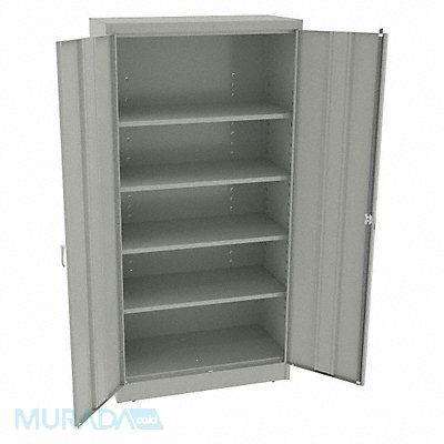 K3851 Storage Cabinet Base Type Frame Body Panel Type Solid Cabinet Color Light Gray Cabinet Material Steel Cabinet Storage Components Shelves Door Handle Type Swing Door Type Solid Duty Rating Medium Duty For Use Indoors/Outdoors No Frame Assembled Assembled Load Capacity per Shelf 200 lb Lock Type Keyed Mobility Stationary Mounting Location Freestanding Number of Shelves 4 Overall Depth 18 in Overall Height 72 in Overall Width 36 in Audit Trail Storage None
