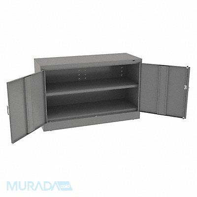 Storage Cabinet Base Type Leveling Body Panel Type Solid Cabinet Color Medium Gray Cabinet Material Steel Cabinet Storage Components Shelves Door Handle Type Swing Door Type Solid Duty Rating Medium Duty For Use Indoors/Outdoors No Frame Assembled Assembled Load Capacity per Shelf 400 lb Lock Type Keyed Mobility Stationary Mounting Location Freestanding Number of Shelves 1 Overall Depth 18 in Overall Height 30 in Overall Width 48 in Audit Trail Storage None