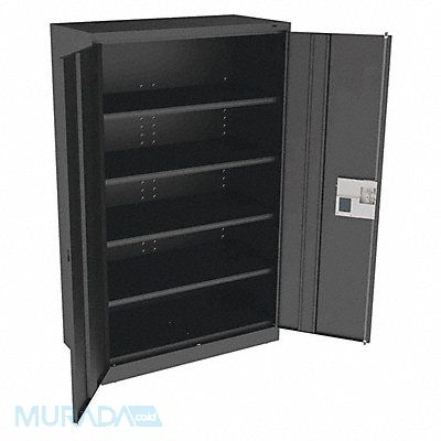 K3874 Storage Cabinet Base Type Leveling Body Panel Type Solid Cabinet Color Black Cabinet Material Steel Cabinet Storage Components Shelves Door Handle Type Recessed Pull Door Type Solid Duty Rating Medium Duty For Use Indoors/Outdoors No Frame Assembled Assembled Load Capacity per Shelf 400 lb Lock Type Electronic Keypad Mobility Stationary Mounting Location Freestanding Number of Shelves 4 Overall Depth 24 in Overall Height 78 in Overall Width 48 in Cabinet Finish Powder Coated
