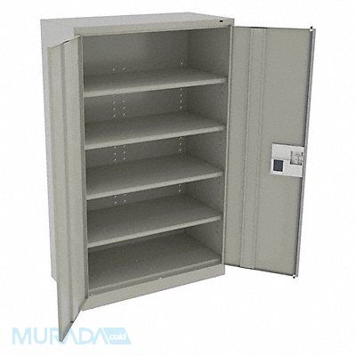 K3874 Storage Cabinet Base Type Leveling Body Panel Type Solid Cabinet Color Light Gray Cabinet Material Steel Cabinet Storage Components Shelves Door Handle Type Recessed Pull Door Type Solid Duty Rating Medium Duty For Use Indoors/Outdoors No Frame Assembled Assembled Load Capacity per Shelf 400 lb Lock Type Electronic Keypad Mobility Stationary Mounting Location Freestanding Number of Shelves 4 Overall Depth 24 in Overall Height 78 in Overall Width 48 in