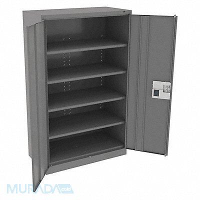 K3874 Storage Cabinet Base Type Leveling Body Panel Type Solid Cabinet Color Medium Gray Cabinet Material Steel Cabinet Storage Components Shelves Door Handle Type Recessed Pull Door Type Solid Duty Rating Medium Duty For Use Indoors/Outdoors No Frame Assembled Assembled Load Capacity per Shelf 400 lb Lock Type Electronic Keypad Mobility Stationary Mounting Location Freestanding Number of Shelves 4 Overall Depth 24 in Overall Height 78 in Overall Width 48 in