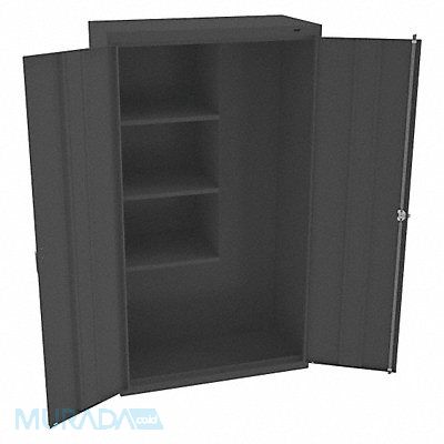 K4848 Storage Cabinet Base Type Frame Body Panel Type Solid Cabinet Color Black Cabinet Material Steel Cabinet Storage Components Shelves Door Handle Type Swing Door Type Solid Duty Rating Light Duty For Use Indoors/Outdoors No Frame Assembled Assembled Load Capacity per Shelf 75 lb Lock Type Keyed Mobility Stationary Mounting Location Freestanding Number of Shelves 3 Overall Depth 18 in Overall Height 64 in Overall Width 36 in Audit Trail Storage None Cabinet Finish Powder Coated