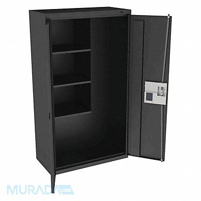 K4849 Storage Cabinet Base Type Frame Body Panel Type Solid Cabinet Color Black Cabinet Material Steel Cabinet Storage Components Shelves Door Handle Type Recessed Pull Door Type Solid Duty Rating Light Duty For Use Indoors/Outdoors No Frame Assembled Assembled Load Capacity per Shelf 75 lb Lock Type Electronic Keypad Mobility Stationary Mounting Location Freestanding Number of Shelves 3 Overall Depth 18 in Overall Height 64 in Overall Width 36 in Cabinet Finish Powder Coated