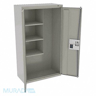 K4849 Storage Cabinet Base Type Frame Body Panel Type Solid Cabinet Color Light Gray Cabinet Material Steel Cabinet Storage Components Shelves Door Handle Type Recessed Pull Door Type Solid Duty Rating Light Duty For Use Indoors/Outdoors No Frame Assembled Assembled Load Capacity per Shelf 75 lb Lock Type Electronic Keypad Mobility Stationary Mounting Location Freestanding Number of Shelves 3 Overall Depth 18 in Overall Height 64 in Overall Width 36 in Cabinet Finish Powder Coated