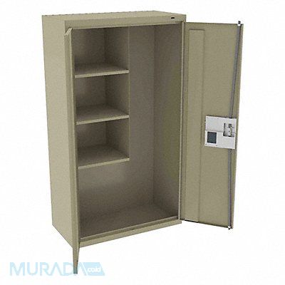 K4849 Storage Cabinet Base Type Frame Body Panel Type Solid Cabinet Color Sand Cabinet Material Steel Cabinet Storage Components Shelves Door Handle Type Recessed Pull Door Type Solid Duty Rating Light Duty For Use Indoors/Outdoors No Frame Assembled Assembled Load Capacity per Shelf 75 lb Lock Type Electronic Keypad Mobility Stationary Mounting Location Freestanding Number of Shelves 3 Overall Depth 18 in Overall Height 64 in Overall Width 36 in Cabinet Finish Powder Coated