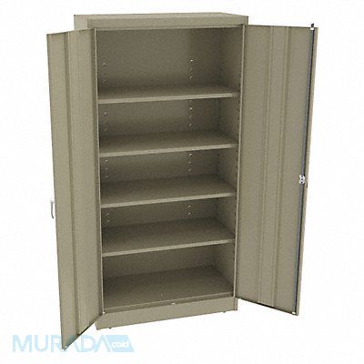 K3851 Storage Cabinet Base Type Frame Body Panel Type Solid Cabinet Color Sand Cabinet Material Steel Cabinet Storage Components Shelves Door Handle Type Swing Door Type Solid Duty Rating Medium Duty For Use Indoors/Outdoors No Frame Assembled Assembled Load Capacity per Shelf 200 lb Lock Type Keyed Mobility Stationary Mounting Location Freestanding Number of Shelves 4 Overall Depth 18 in Overall Height 72 in Overall Width 36 in Audit Trail Storage None Cabinet Finish Powder Coated