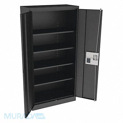 K3837 Storage Cabinet Base Type Frame Body Panel Type Solid Cabinet Color Black Cabinet Material Steel Cabinet Storage Components Shelves Door Handle Type Recessed Pull Door Type Solid Duty Rating Light Duty For Use Indoors/Outdoors No Frame Assembled Assembled Load Capacity per Shelf 200 lb Lock Type Electronic Keypad Mobility Stationary Mounting Location Freestanding Number of Shelves 4 Overall Depth 18 in Overall Height 72 in Overall Width 36 in Cabinet Finish Powder Coated