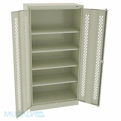 K3838 Storage Cabinet Base Type Frame Body Panel Type Ventilated Cabinet Color Putty Cabinet Material Steel Door Handle Type Swing Door Type Ventilated Duty Rating Light Duty Frame Assembled Assembled Load Capacity per Shelf 200 lb Lock Type Keyed Mobility Stationary Number of Shelves 4 Overall Depth 18 in Overall Height 72 in Overall Width 36 in Audit Trail Storage None Cabinet Finish Powder Coated Number of Doors 2 Panel Material Thickness 24 ga Shelf Adjustability Adjustable