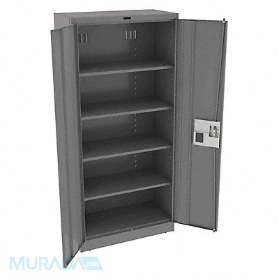 K3839 Storage Cabinet Base Type Leveling Body Panel Type Solid Cabinet Color Medium Gray Cabinet Material Steel Cabinet Storage Components Shelves Door Handle Type Recessed Pull Door Type Solid Duty Rating Light Duty For Use Indoors/Outdoors No Frame Assembled Assembled Load Capacity per Shelf 200 lb Lock Type Electronic Keypad Mobility Stationary Mounting Location Freestanding Number of Shelves 4 Overall Depth 18 in Overall Height 78 in Overall Width 36 in