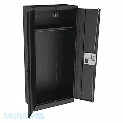 Storage Cabinet Base Type Leveling Body Panel Type Solid Cabinet Color Black Cabinet Material Steel Cabinet Storage Components Hanging Rods Shelves Door Handle Type Recessed Pull Door Type Solid Duty Rating Medium Duty For Use Indoors/Outdoors No Frame Assembled Assembled Load Capacity per Shelf 150 lb Lock Type Electronic Keypad Mobility Stationary Mounting Location Freestanding Number of Shelves 1 Overall Depth 18 in Overall Height 78 in Overall Width 36 in