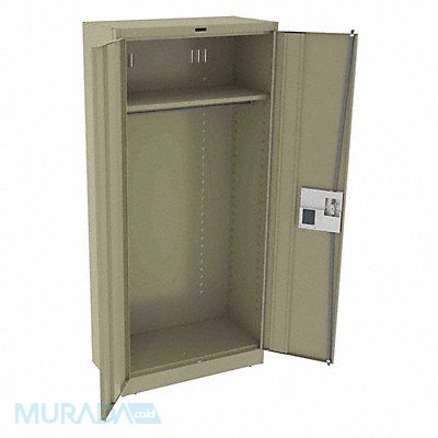 Storage Cabinet Base Type Leveling Body Panel Type Solid Cabinet Color Sand Cabinet Material Steel Cabinet Storage Components Hanging Rods Shelves Door Handle Type Recessed Pull Door Type Solid Duty Rating Medium Duty For Use Indoors/Outdoors No Frame Assembled Assembled Load Capacity per Shelf 150 lb Lock Type Electronic Keypad Mobility Stationary Mounting Location Freestanding Number of Shelves 1 Overall Depth 18 in Overall Height 78 in Overall Width 36 in