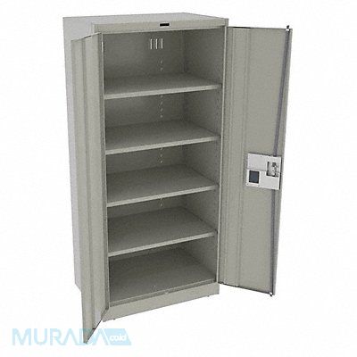 K3844 Storage Cabinet Base Type Leveling Body Panel Type Solid Cabinet Color Light Gray Cabinet Material Steel Cabinet Storage Components Shelves Door Handle Type Recessed Pull Door Type Solid Duty Rating Light Duty For Use Indoors/Outdoors No Frame Assembled Assembled Load Capacity per Shelf 200 lb Lock Type Electronic Keypad Mobility Stationary Mounting Location Freestanding Number of Shelves 4 Overall Depth 24 in Overall Height 78 in Overall Width 36 in