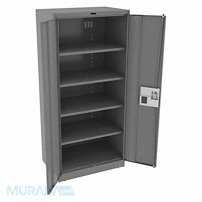 K3844 Storage Cabinet Base Type Leveling Body Panel Type Solid Cabinet Color Medium Gray Cabinet Material Steel Cabinet Storage Components Shelves Door Handle Type Recessed Pull Door Type Solid Duty Rating Light Duty For Use Indoors/Outdoors No Frame Assembled Assembled Load Capacity per Shelf 200 lb Lock Type Electronic Keypad Mobility Stationary Mounting Location Freestanding Number of Shelves 4 Overall Depth 24 in Overall Height 78 in Overall Width 36 in