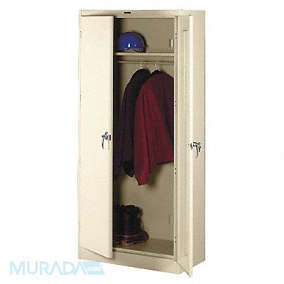 Storage Cabinet Base Type Leveling Body Panel Type Solid Cabinet Color Putty Cabinet Material Steel Cabinet Storage Components Hanging Rods Shelves Door Handle Type Swing Door Type Solid Duty Rating Medium Duty For Use Indoors/Outdoors No Frame Assembled Unassembled Load Capacity per Shelf 150 lb Lock Type Keyed Mobility Stationary Mounting Location Freestanding Number of Shelves 1 Overall Depth 18 in Overall Height 78 in Overall Width 36 in Audit Trail Storage None