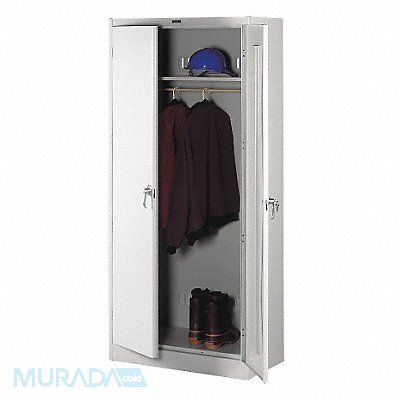 Storage Cabinet Base Type Leveling Body Panel Type Solid Cabinet Color Light Gray Cabinet Material Steel Cabinet Storage Components Hanging Rods Shelves Door Handle Type Swing Door Type Solid Duty Rating Medium Duty For Use Indoors/Outdoors No Frame Assembled Assembled Load Capacity per Shelf 150 lb Lock Type Keyed Mobility Stationary Mounting Location Freestanding Number of Shelves 1 Overall Depth 18 in Overall Height 78 in Overall Width 36 in Audit Trail Storage None