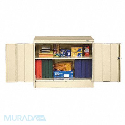Storage Cabinet Base Type Frame Body Panel Type Solid Cabinet Color Putty Cabinet Material Steel Cabinet Storage Components Shelves Door Handle Type Swing Door Type Solid Duty Rating Light Duty For Use Indoors/Outdoors No Frame Assembled Assembled Load Capacity per Shelf 200 lb Lock Type Keyed Mobility Stationary Mounting Location Freestanding Number of Shelves 2 Overall Depth 18 in Overall Height 30 in Overall Width 36 in Audit Trail Storage None Cabinet Finish Powder Coated