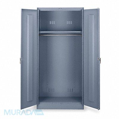 F0308 Storage Cabinet Base Type Leveling Body Panel Type Solid Cabinet Color Medium Gray Cabinet Material Steel Cabinet Storage Components Hanging Rods Shelves Door Handle Type Swing Door Type Solid Duty Rating Medium Duty For Use Indoors/Outdoors No Frame Assembled Assembled Load Capacity per Shelf 150 lb Lock Type Keyed Mobility Stationary Mounting Location Freestanding Number of Shelves 1 Overall Depth 18 in Overall Height 78 in Overall Width 36 in Audit Trail Storage None