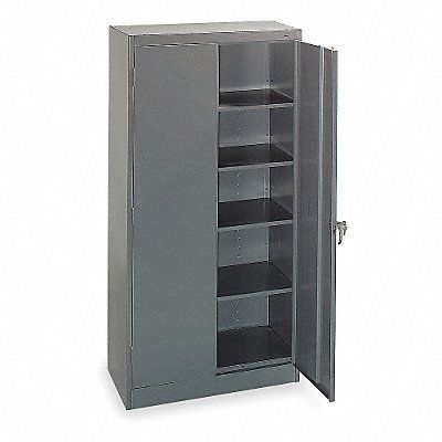 Storage Cabinet Base Type Frame Body Panel Type Solid Cabinet Color Medium Gray Cabinet Material Steel Cabinet Storage Components Shelves Door Handle Type Swing Door Type Solid Duty Rating Light Duty For Use Indoors/Outdoors No Frame Assembled Unassembled Load Capacity per Shelf 200 lb Lock Type Keyed Mobility Stationary Mounting Location Freestanding Number of Shelves 4 Overall Depth 18 in Overall Height 72 in Overall Width 36 in Audit Trail Storage None