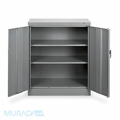 Storage Cabinet Base Type Frame Body Panel Type Solid Cabinet Color Medium Gray Cabinet Material Steel Cabinet Storage Components Shelves Door Handle Type Swing Door Type Solid Duty Rating Light Duty For Use Indoors/Outdoors No Frame Assembled Unassembled Load Capacity per Shelf 200 lb Lock Type Keyed Mobility Stationary Mounting Location Freestanding Number of Shelves 2 Overall Depth 18 in Overall Height 42 in Overall Width 36 in Audit Trail Storage None